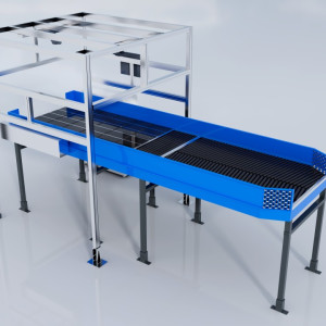 The whole equipment is driven by the sprocket chain through the deceleration motor of the driving section, and runs at a constant high speed in the closed-loop track. The sorting carrier corresponding to each item is regarded as a dynamic window, and the sorting machine automatically locates and tracks the real-time position of each window. When the goods arrive at the unloading chute where the specified address is located, the controller sends a signal, and the belt conveyor runs laterally in turn to sort the goods into the unloading chute to realize the accurate sorting of individual goods.